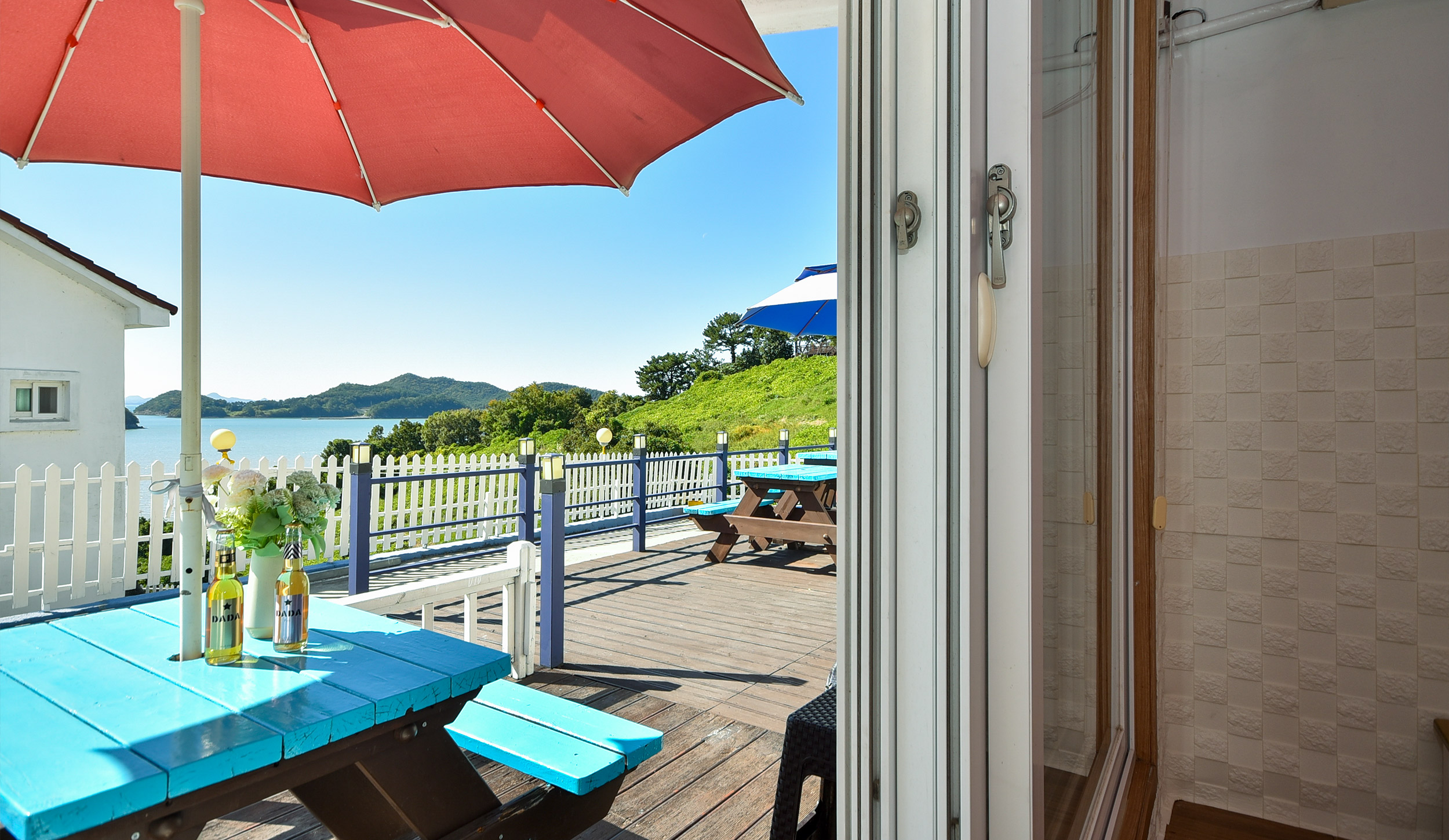 집기시설 : TV,전자레인지,전기밥솥,드라이기,빗,욕실용품,핫플레이트,주방,식기,테이블,의자,소파,인터넷,냉장고,커피포트,에어컨,옷걸이,침대,이불,베개,자동세척기,개별테라스,객실샤워실