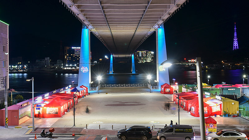 아름다운 밤바다와 바다 냄새에 취해 보세요! 여수 밤바다를 보면서 우정과 추억을 나눌 수 있도록 주변의 야간 경관 관광시설이 설치되어 있답니다. 여수밤바다 낭만포차가 2019년 10월 1일부터 거북선대교 하부공간으로 장소 이동하여 운영됩니다.